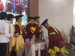 Dalam kesempatan tersebut, Sersan Kadet Dian Weiha, mahasiswa Diploma III Program Studi Perikanan Tangkap Fakultas Vokasi Logistik Militer, terpilih sebagai lulusan terbaik dan mewakili seluruh wisudawan diploma III melaksanakan wisuda dikampus pusat.
